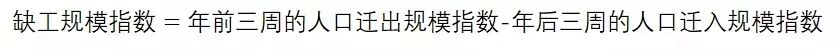 这里,我们可以继续利用百度地图数据,比较一下2020年春季前后三周的人口迁入迁出变化,以近似地代表每个城市缺工的大体情况,于是就有了以下公式: