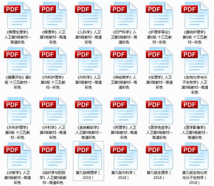病理生理学、医学免疫学、医学影像学、组织学与胚胎学、护理学导论、内科护理学、外科护理学、基础护理学、健康评估