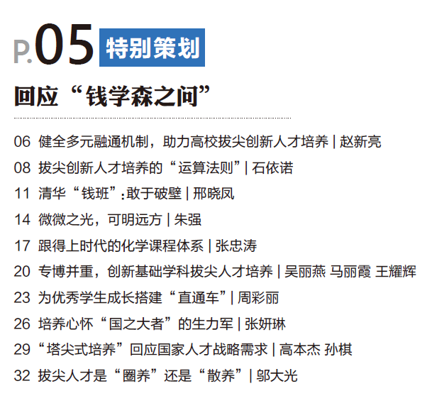 造就拔尖创新人才,是教育应担负起的重责。《教育家》一直关注中小学、高校的拔尖创新人才培养实践,以“创新人才培养,普高怎么办”“回应钱学森之问”“创新人才的贯通培养”等主题进行了专题报道,将陆续推出中小学和高校的实践探索,为更多学校提供参考借鉴。