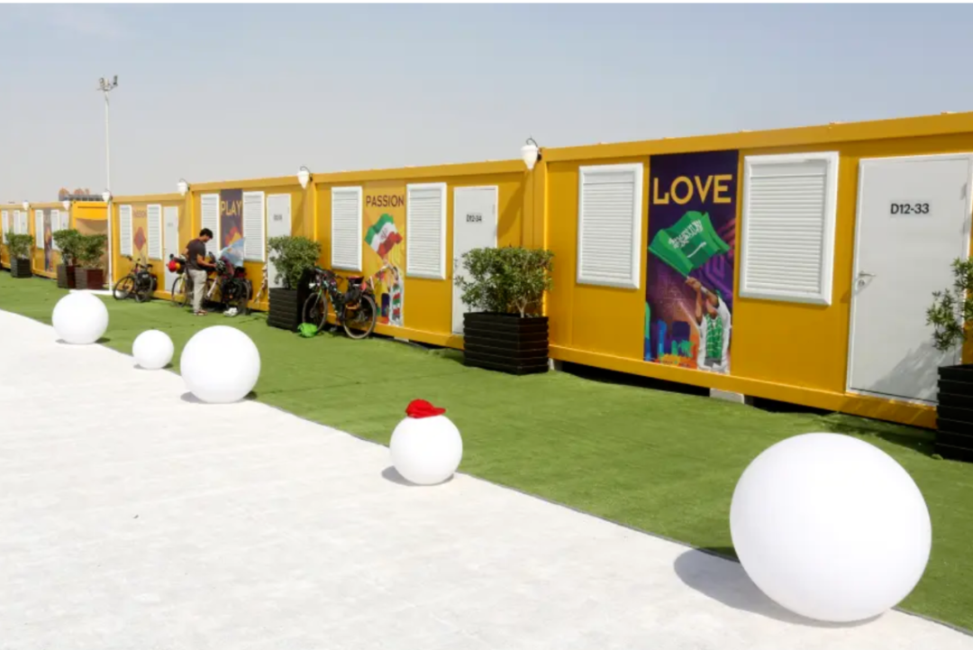 用尽一切资源后,卡塔尔找来了集装箱。由 6000 个集装箱式的可移动房间组成的“球迷村”,落户多哈机场附近。每个房间的单晚租价是 200 美元。