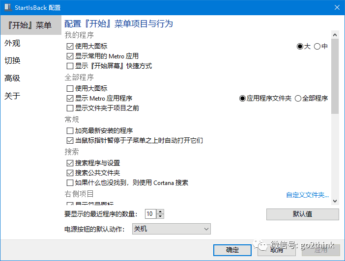 StartIsBack 的自定义程度非常高,让我们可以自由配置开始菜单的各个项目和操作效果。