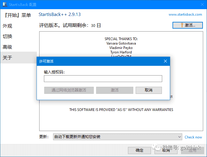 「StartIsBack」就是一个非常出名的开始菜单和任务栏美化增强工具。