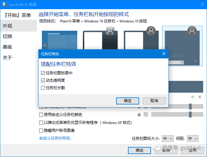 可以设置图标居中、动态透明度和任务栏分割三种特效样式,让任务栏更加美观智能。