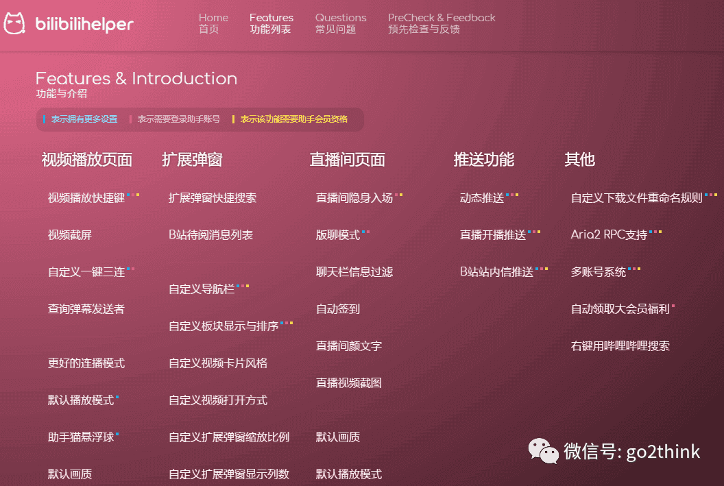 支持截屏、视频/弹幕/封面下载、自定义界面、特别关注、自动签到、多账号系统等……