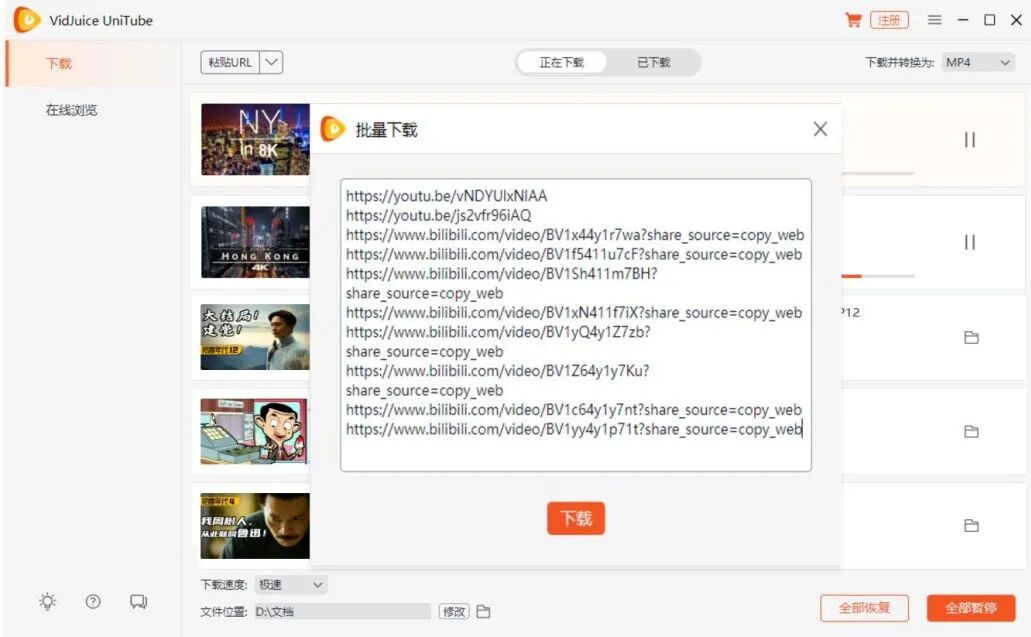 我们只要把视频链接粘贴进批量下载框中,即可一键下载。