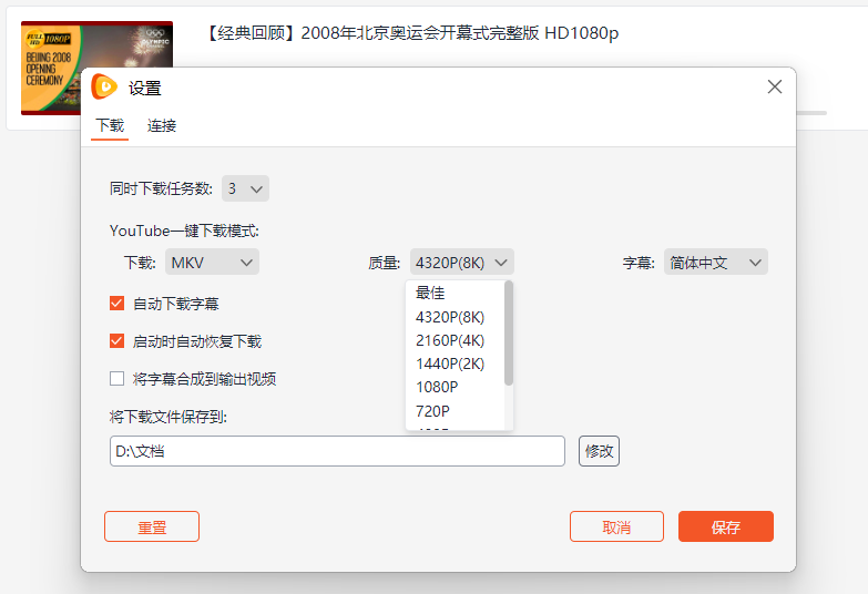软件支持下载高达 4K、8K 的高分辨率视频,音频的比特率也可达到 320kbps。
