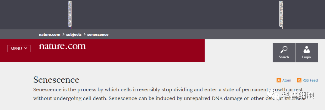 衰老是细胞不可逆地停止分裂,并进入永久性生长停滞状态,而不经历细胞死亡的过程