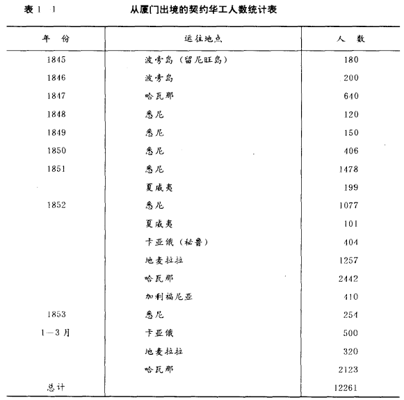 从厦门出境的契约华工人数统计 / 福建省地方志编纂委员会编. 福建省志 华侨志[8]