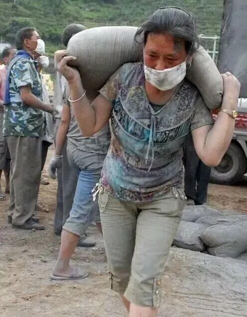 这应该是位母亲,背着小的,拉着大的,也许今天运气好可以给孩子买一棵棒棒糖。