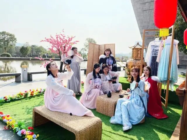 饮龙虎仙茶,得健康人生,在竹筏码头卡点,开展天师赠道茶迎宾活动。设仙女送灵泉水项目。