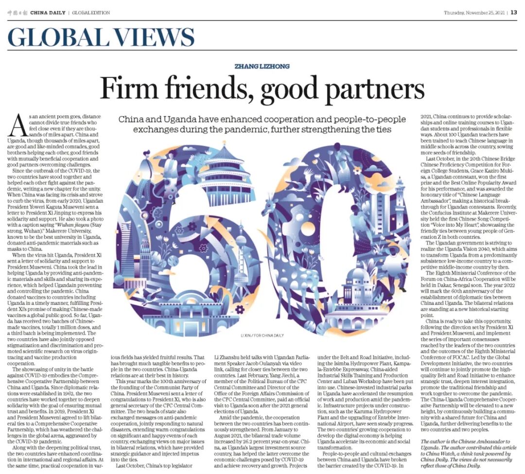 张利忠大使在《中国日报》发表署名文章《守望相助抗疫情,全面合作谱新篇》