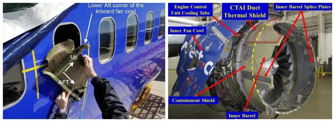 这也是同款CFM56-7B发动机叶片疲劳断裂,摧毁了飞机左发,碎片击穿客舱舷窗,并造成1名旅客身亡。但在飞行员熟练的技术之下,仍平安落地。2016年8月,另一架西南航空的波音737-700型客机,同样发生CFM56-7B型发动机的风扇叶片甩脱故障,并无更为严重事故发生。![]()