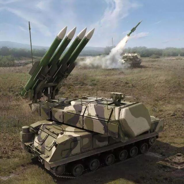 中远程防空火力为SA-11“山毛榉”,射程30-50公里,同样采用履带式底盘,担负集团军、师(主要是师)一级的防空任务。俄军第53防空导弹旅的“山毛榉”,也就是2014年击落马航MH-17的罪魁祸首。![]()