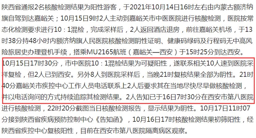 但直到10月17日上午8时30分,西安疫情防控部门才接到嘉峪关方面协查通报,两夫妇核酸检测结果异常。