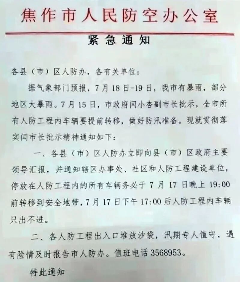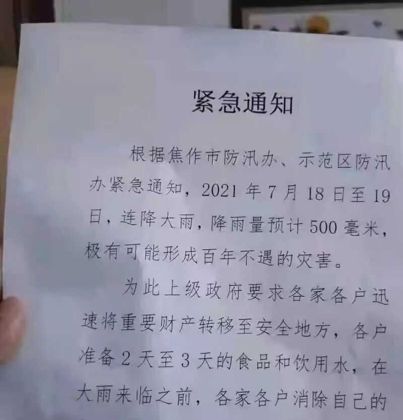 早在2021年7月17日(周六)的晚上,得益于这一份通知,我们也注意到了这场即将发生在河南北部的超强降雨。