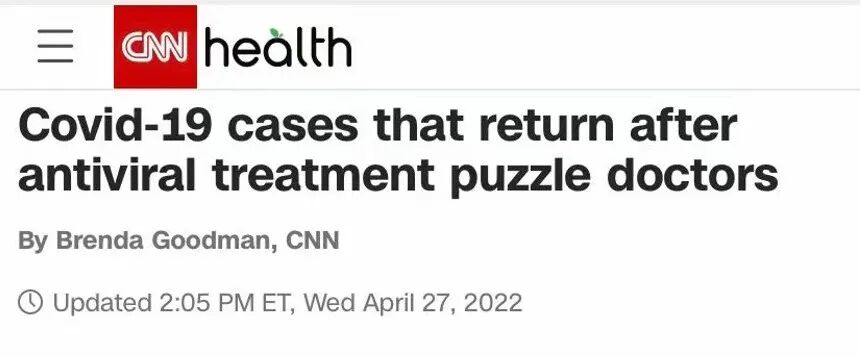 波士顿布莱根妇女医院的神经学家迈克尔·查内斯博士发表了一篇预印论文,第一次在医学文献中描述了Paxlovid停用复阳的案例。病例是一位71岁的男性,在接种疫苗和加强针后,服用Paxlovid后很快就从COVID-19中恢复过来,但在第一次阳性测试后大约9天,症状复发,病毒水平激增。