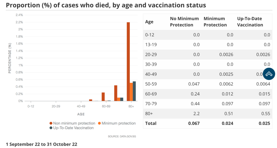 3. 华人居多的新加坡数据可作为参考。流感病死率为0.1%,而新加坡“松绑”3月后新冠病死率不到0.1%。但需要特别注意的是,根据新加坡数据,对于未打完三针疫苗的80岁以上新冠感染者,病死率仍有2.2%。另外,根据中国香港数据,未接种疫苗的80岁以上新冠感染者死亡率为16.16%。事实上,新加坡没有像“防疫爱好者”想象中的“躺平”,新加坡在老人接种疫苗上的努力值得借鉴。