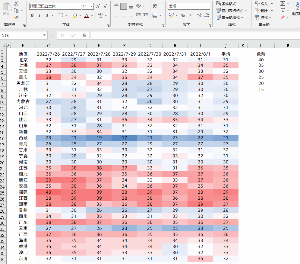 简单总结一下,制作「热力图」的关键功能就是条件格式里的【色阶】。