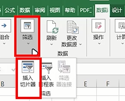 ❶ 在【筛选】中找到【切片器】并点击。