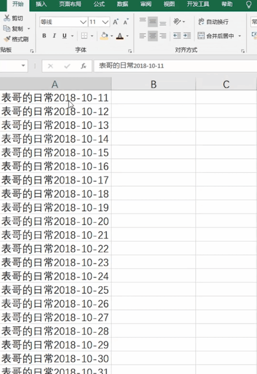 ❷ 然后在下一行按【Ctrl+E】,所有的文字和日期就都分开啦!(要求 Office 2013 及以上版本~)