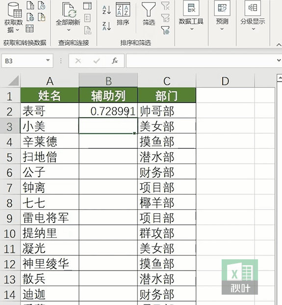 ❸ 双击右下角,选中 B2 单元格,点击「数据」-「升序」,就能完成随机排序。好啦,今天的这两个小技巧你都学会了吗?是不是超级简单,快去动手实操试试吧~![]()
