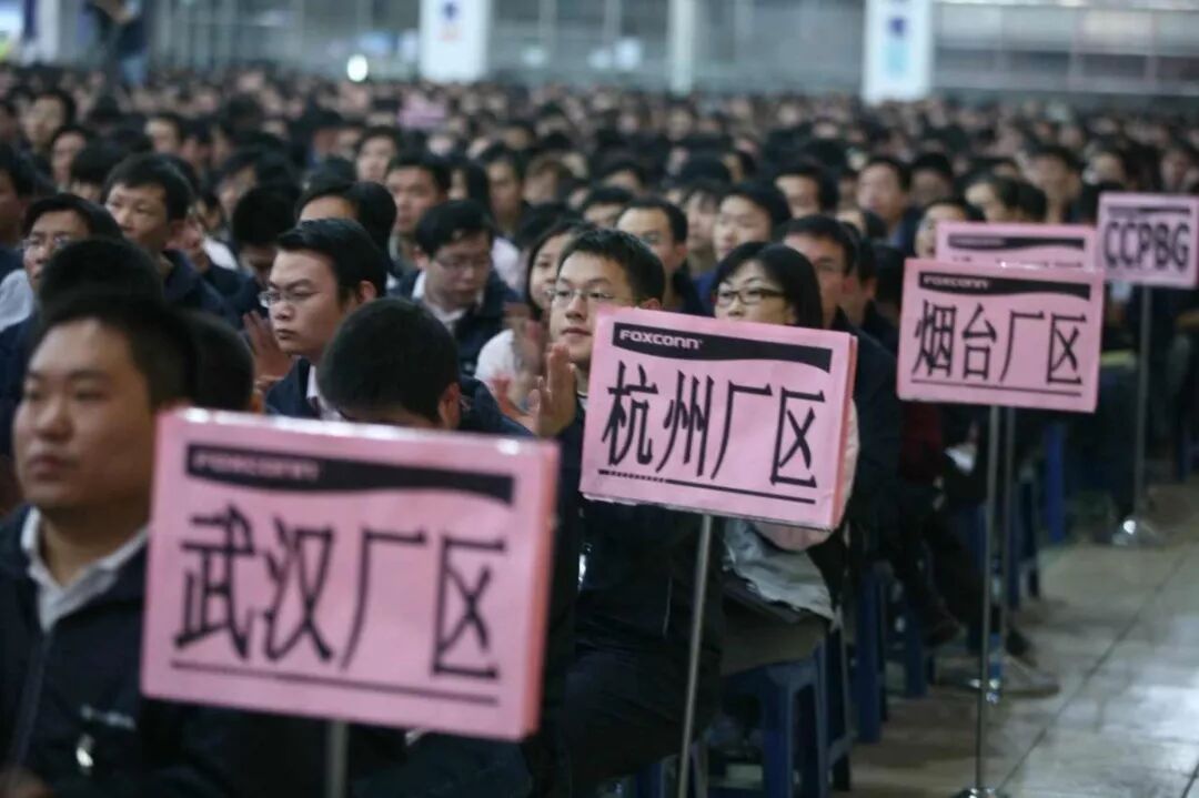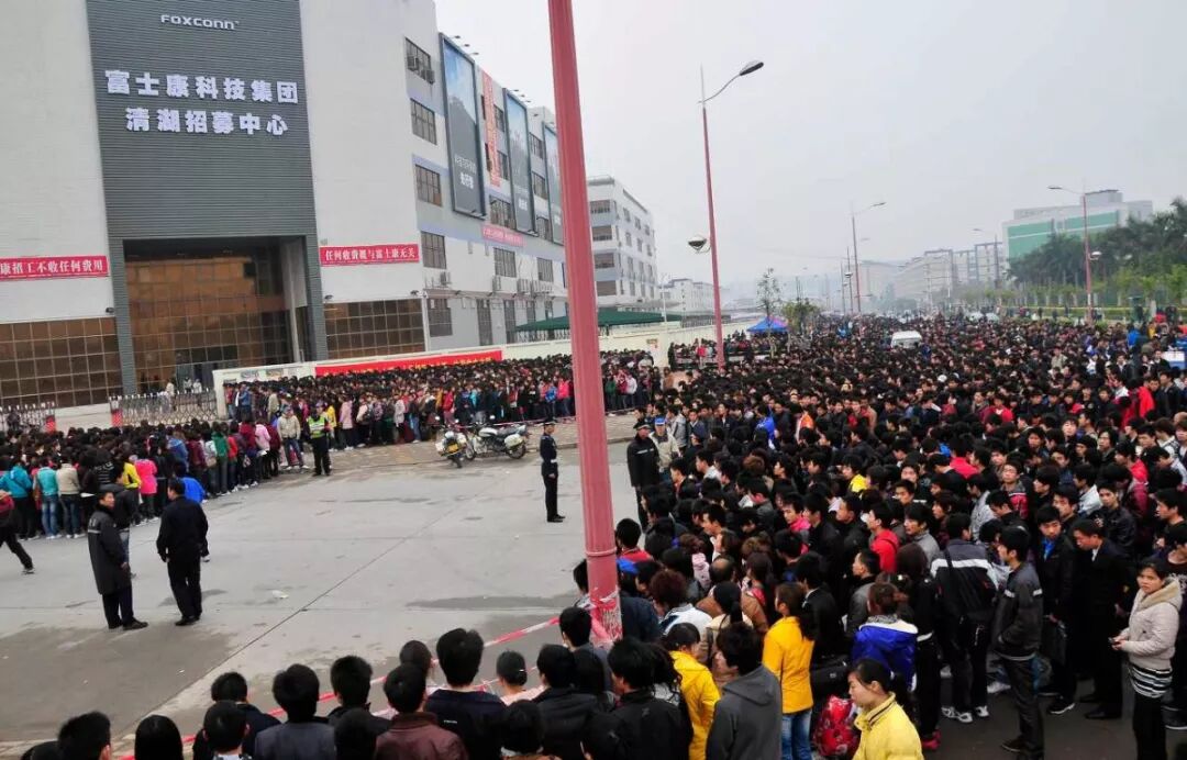 同样在5月,30度高温的深圳,每天都有上千名来自全国各地年轻人聚集在富士康龙华科技园,排着长队等待招聘。他们给出的理由很简单,“工资高,包吃包住”。排队的人里,除了找工作的工人,还有在各地负责招商的政府官员,期待着从富士康的撤退中分得一杯羹。
