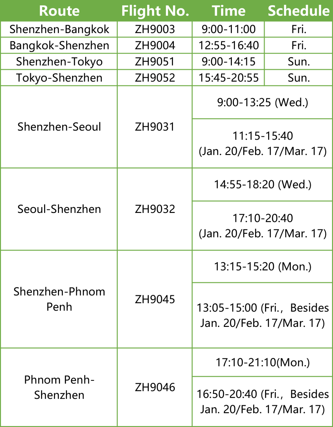 Jan. - Mar. Flight Schedule