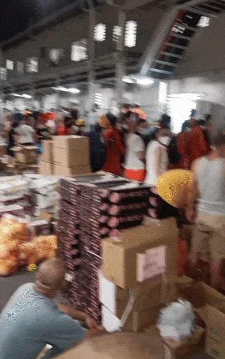 主持人勇哥、志愿者和工作人员在一线奋战,不喝水、不吃饭、不上厕持续5个多小时,就是为了把物资尽快送进宿舍。