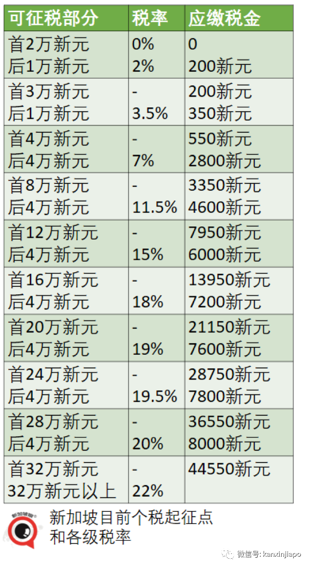 以可征税部分80万新元为例,在新税制下,要多交3000新元个税。