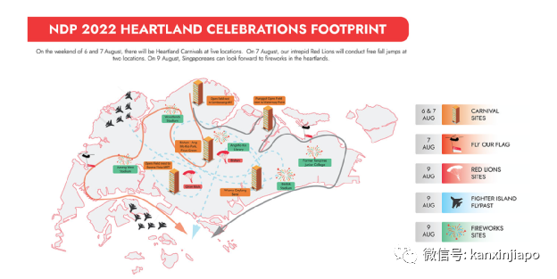 新加坡眼之前就曾整理过国庆日游玩攻略,大家赶紧再“恶补”一下打卡点,明天赶紧出门看看吧!8月9日,NDP @Heartlands将在以下五个地点举行免费的烟花表演。时间是在晚上8点15分至8点25分之间。