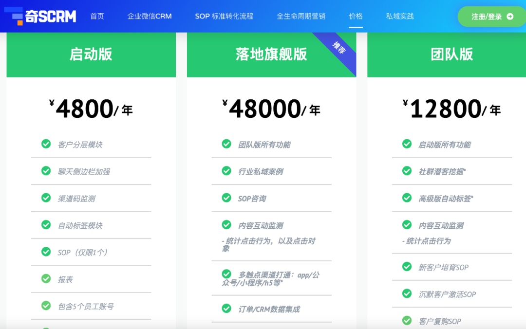 我们自己也比较意外的是,我们卖的企微SCRM是市面上所有同类产品里最贵的,而最贵的版本也是卖的最好的。没有人买启动版。一年之前我们从未想过能把产品卖出去近5w一年,客单价整整提了10倍...所以为什么我们能把客单价提升这么多?因为私域的很多客户,其实真正在意的是落地,你工具包装的再好,客户用不起来,多少钱也是白搭。没有客户成功的SaaS工具是没有出头之日的。
