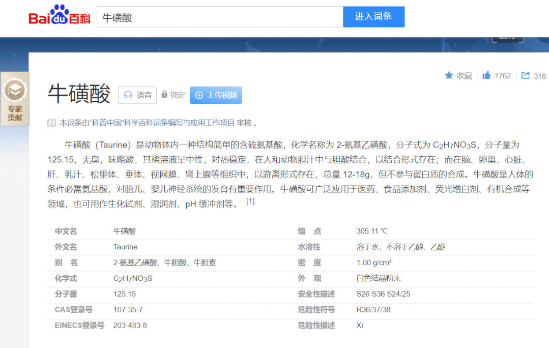 而牛磺酸是出了名的补充活力,恢复体力,像市面上的运动功能饮料,红牛、东鹏特饮都含有牛磺酸。