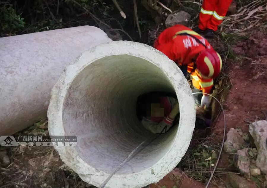 1月17日,在桂平市木乐镇一所学校门前,一名11岁的女孩贪玩,被困在水泥管里2个多小时。由于被卡时间较长,女孩不时发出痛苦的呻吟声。后消防官兵赶到现场处置,将她成功救出。