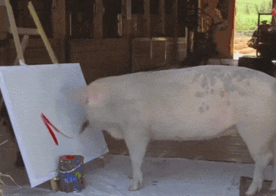 1月19日,堪称动物界抽象画大师的猪界第一“毕加索”,举办首个画展。这只名叫毕加索的小猪4周大的时候被主人从一个农场救出,避免了沦为熏肉。它没事就咬着画笔在纸上涂鸦,用色和线条都非常大胆。