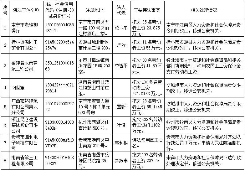 1月18日,自治区人力资源和社会保障厅对外公布2018年第一批重大劳动保障违法案件,涉及7家单位1名个人。违法主体拖欠工资的总金额达1595.45万元,将被计入诚信档案,实行联合惩戒。