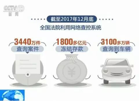 近日,据最高人民法院消息,截至2017年年底,全国法院利用网络查控系统冻结“老赖”存款1800多亿元, 全国累计公开失信被执行人信息959万余人次。