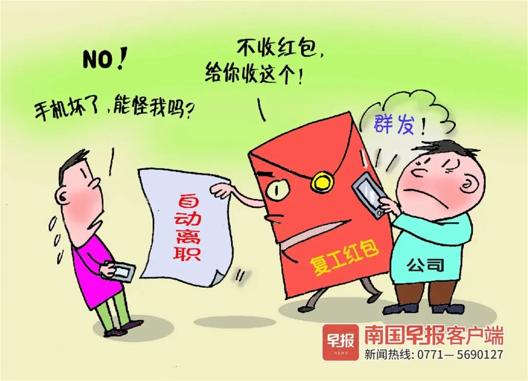 ▲员工因手机故障未领取复工红包返岗,公司按其“自动离职”处理。