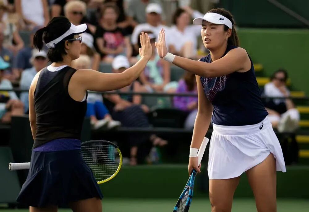 ▲中国组合徐一璠/杨钊煊在比赛中。图源:女子网球协会(WTA)社交媒体账号