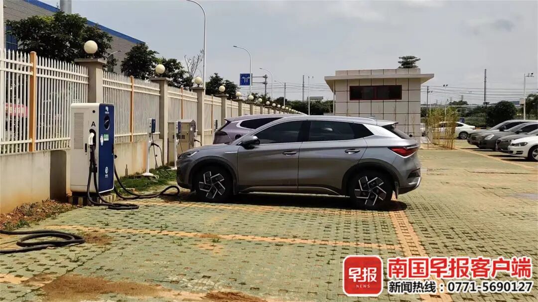 ▲新能源汽车正在公共充电桩充电。南国早报客户端记者 陆欣楠摄