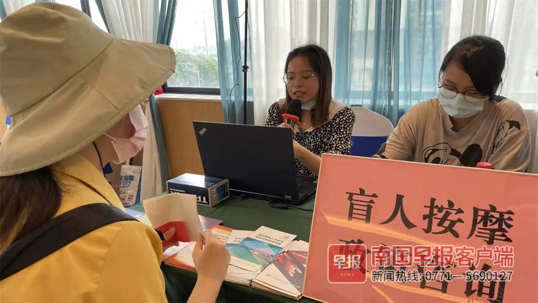 ■ 5月31日,自治区残联在南宁举办2022年“就业帮扶,助残圆梦”盲人按摩专场招聘会,共有12家来自南宁市的盲人按摩机构到场进行招聘,为盲人按摩师提供就业岗位。【详讯】