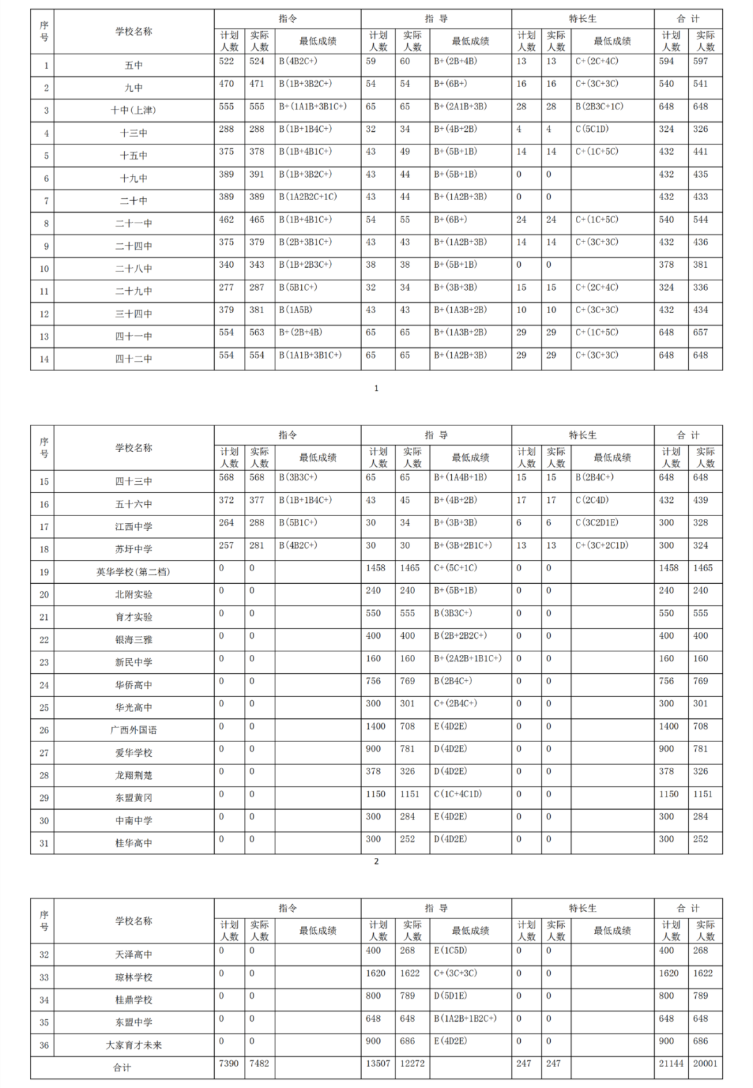 南宁十中(上津)、四十一中指令和指导性计划,考生的总成绩都在B+以上。民办学校中,北附实验、新民中学的生源最好,考生总成绩也在B+以上。广西外国语学校、爱华学校、龙翔荆楚等部分学校生源不满。