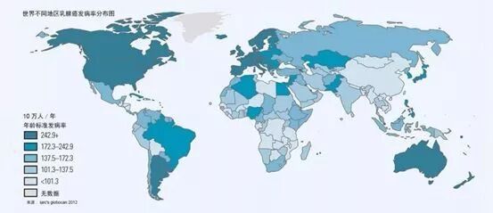 据2018年国际癌症研究机构(IARC)调查数据显示,乳腺癌在全球女性癌症中的发病率为24.2%,占据女性癌症的首位,其中52.9%发生在发展中国家。