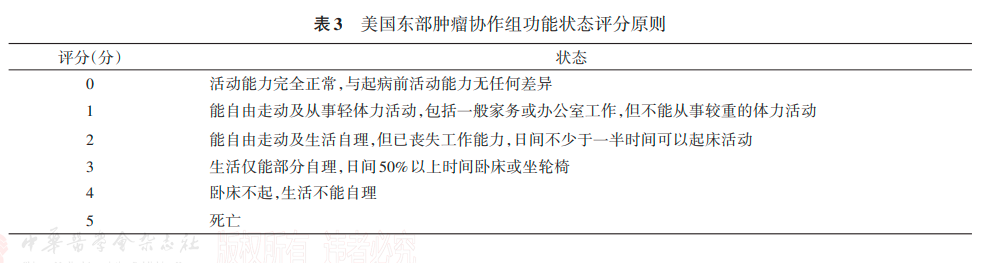 3. Ⅳ期NSCLC患者的全身治疗建议在明确患者NSCLC病理类型(鳞状细胞癌或非鳞状细胞癌)和驱动基因突变状态并进行美国东部肿瘤协作组功能状态评分的基础上,选择适合患者的全身治疗方案(表3)。