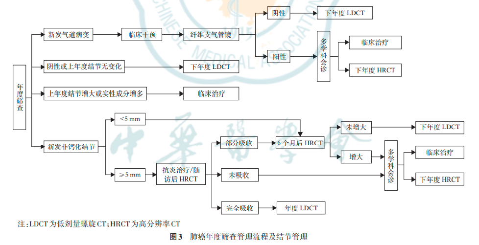 (2)如筛查结果为阴性或上年度检出结节无变化,建议进入下年度LDCT筛查。