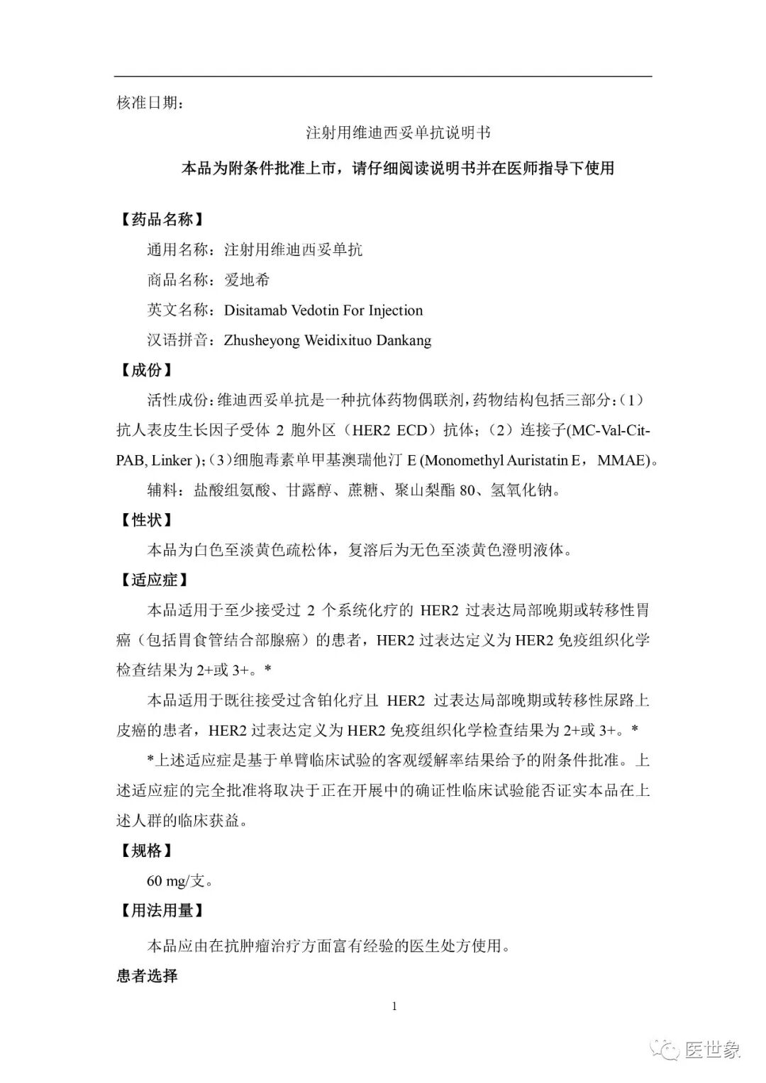维迪西妥单抗(商品名称:爱地希)