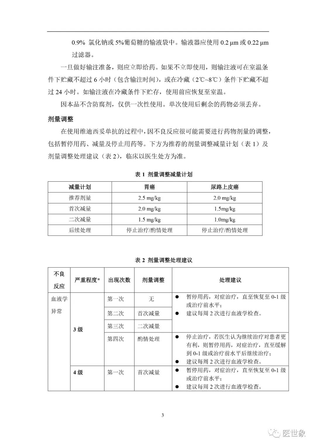胃癌患者:2.5 mg/kg,每两周一次,静脉滴注,直至疾病进展或出现不可耐受的毒性。