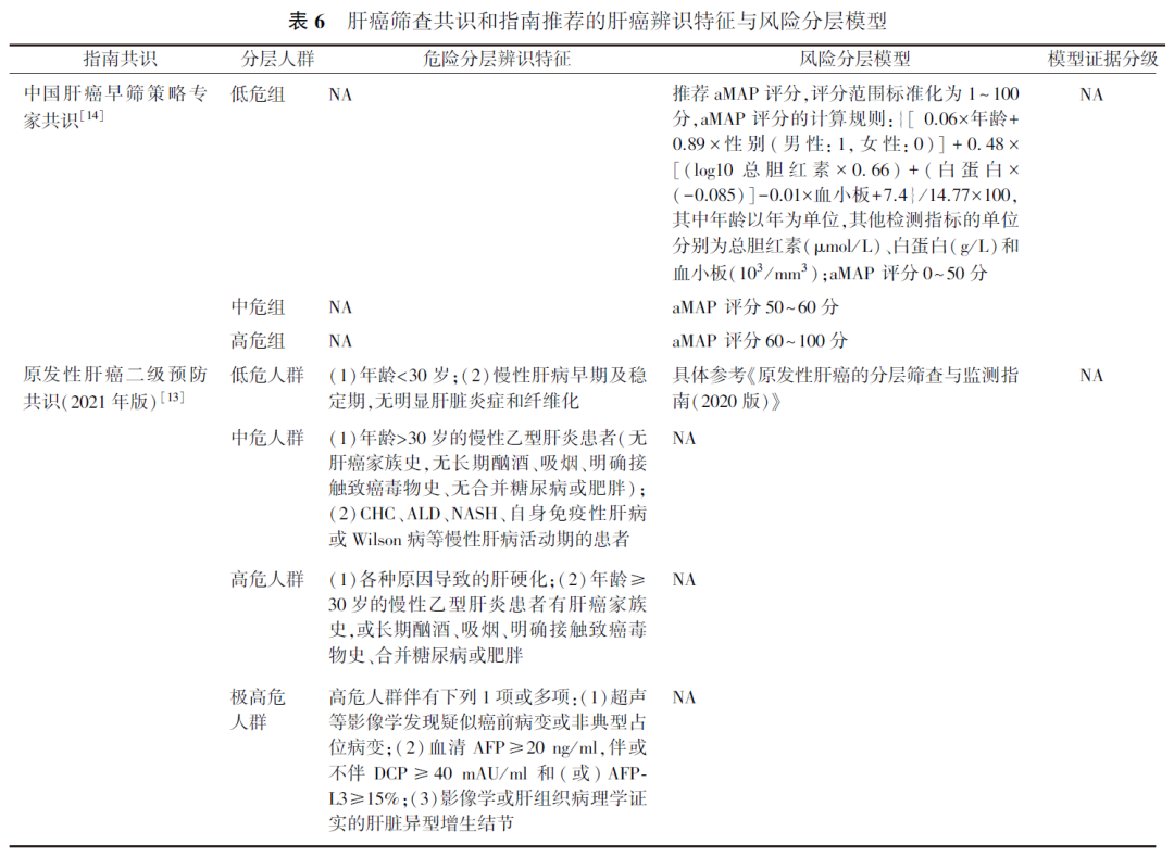 一般风险人群是指患癌水平处于平均或较低水平的人群。目前各国制定的肝癌相关指南尚无对于一般风险人群的准确定义,且只推荐对肝癌高危人群进行肝癌筛查,未推荐对全人群进行筛查的策略(表5)。本指南将上述定义为肝癌高风险人群以外的人群认为是肝癌一般风险人群。