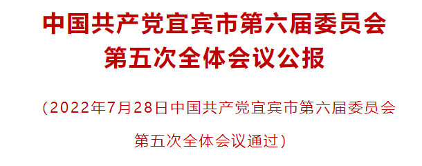 中国共产党宜宾市第六届委员会第五次全体会议,于2022年7月28日在宜宾市叙州区举行。