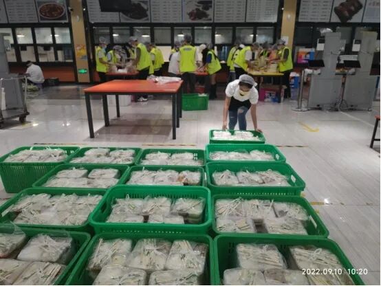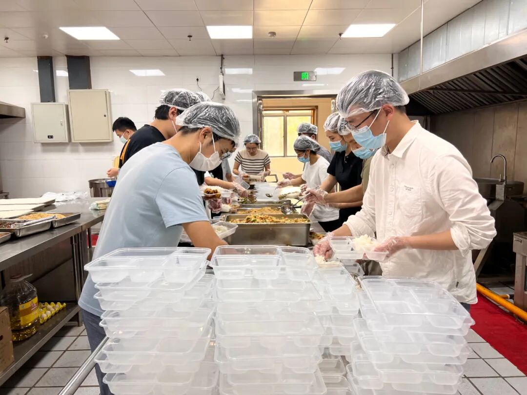 这为学校后勤保障部门迎来了严峻考验:面对艰巨的餐饮保供任务,临港校区当时仅40位食堂员工,人手严重不足。得知消息后,在家的后勤员工主动申请返回岗位,贡献自己的力量。学校也立即组织党员干部、教师、学生志愿者支援食堂。