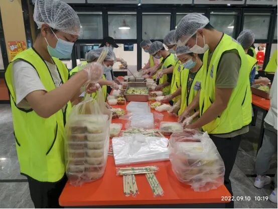 三江新区实施静态管理以来,西南交大宜宾研究院成立了青年抗疫志愿者服务群。37名青年志愿者下沉社区基层,冒雨协助医护人员进行核酸检测工作,参与到到食堂饭菜打包及分装工作当中。